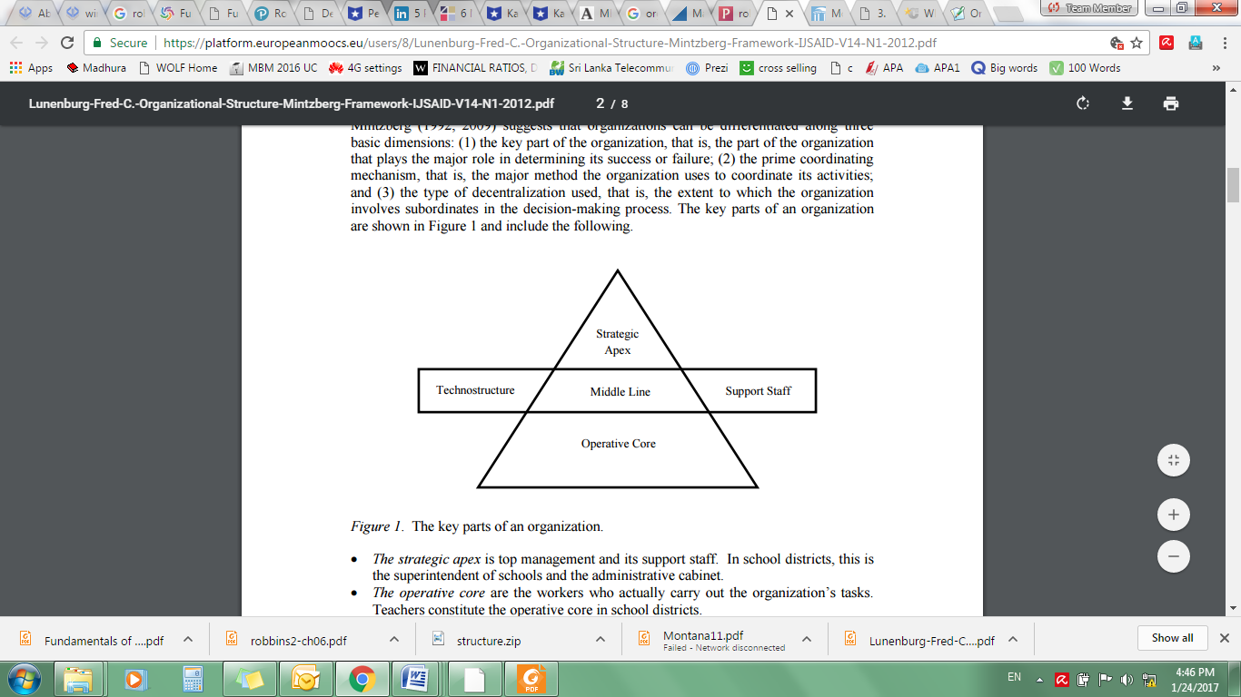 Source: Lunenburg, FC 2012, Organizational Structure: Mintzberg’s Framework, International Journal of Scholarly, Academic, Intellectual Diversity, Volume 14, No 1, pp 1-8
